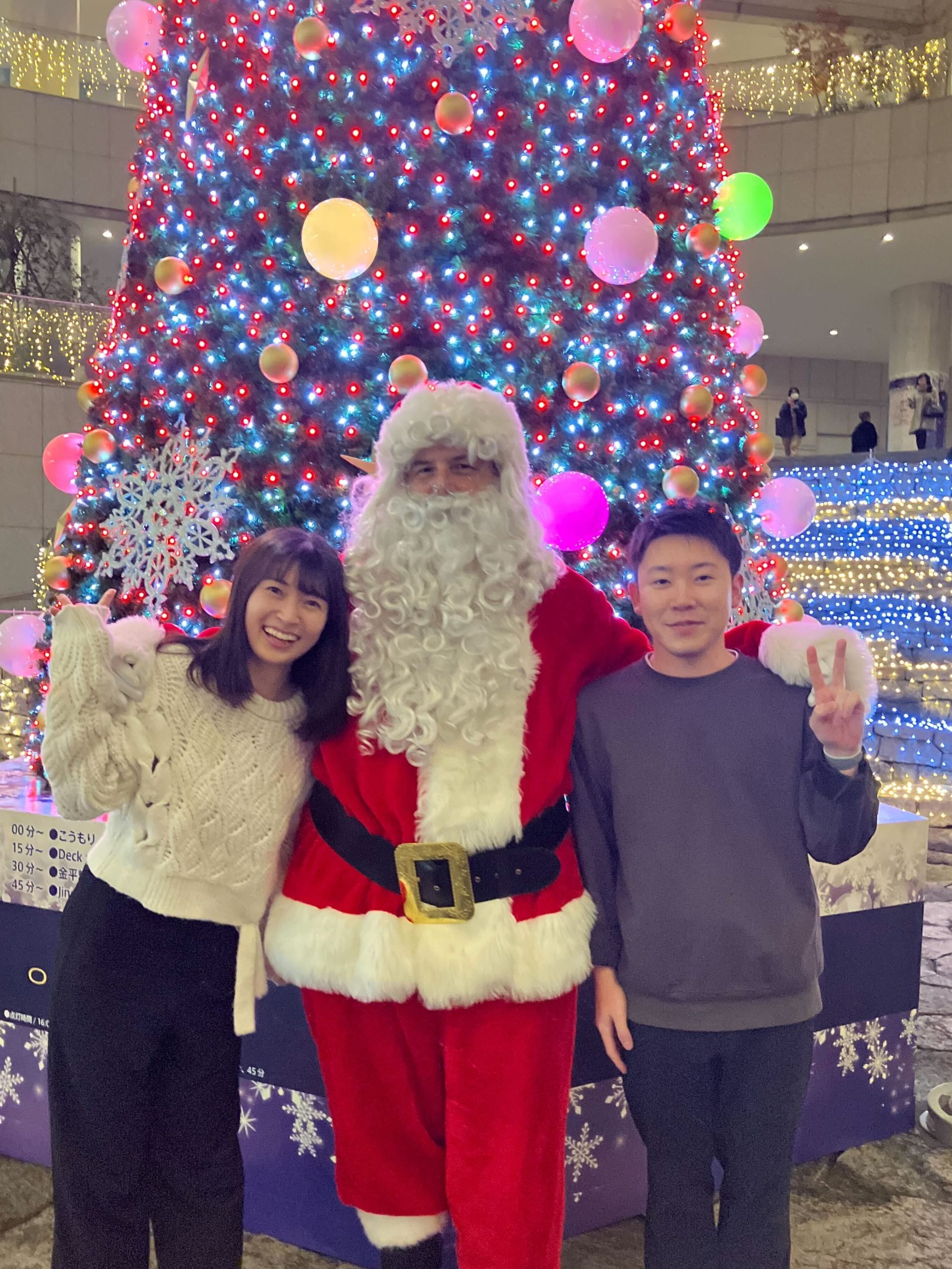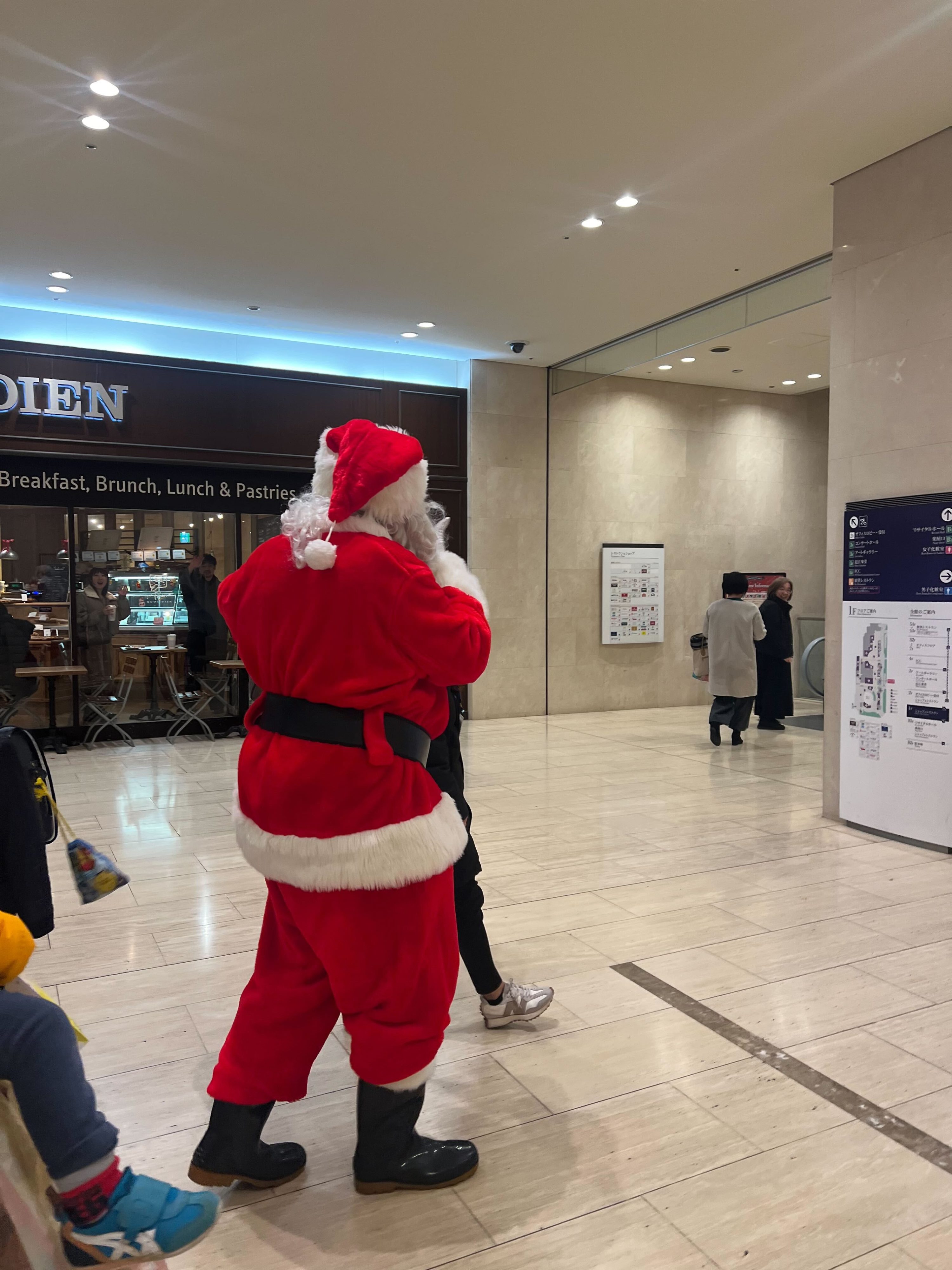 今年のサンタグリーティングはまさかの、練り歩きスタイル…オペラシティ内をサンタさんが練り歩くので、同期みんなでオペラシティ内を探し回りました。