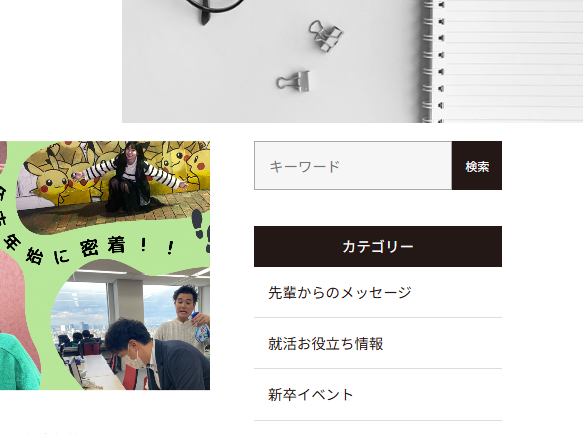 検索例‥‥「コーディネーター」「マネージャー」「モバイル販売」「コールセンター」「入社式」「内定者懇親会」