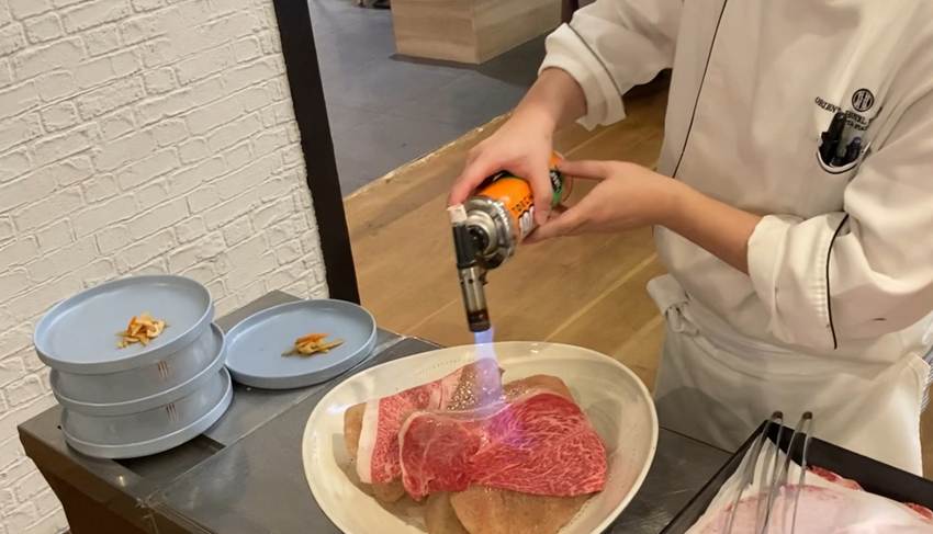 💁♀️福岡支店・広島営業所メンバーは、年齢の近い25卒の先輩も参加をして、ビュッフェ形式のランチを楽しんだようです。美味しそうなお肉を目の前で調理してくれていたようで、その動画も共有いただいたので切り抜いて皆さんにもお届けです🥩