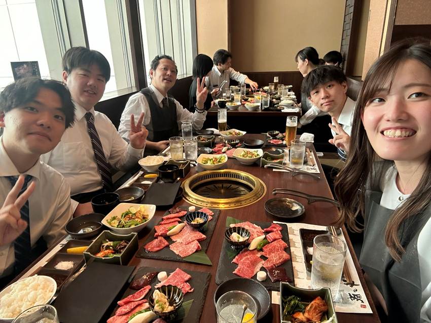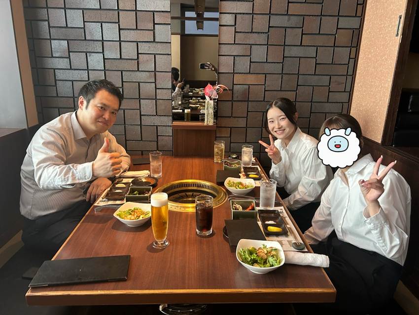 💁♀️大阪支店メンバーは、豪華に焼肉ランチを堪能したようです◎3つのテーブルに分かれていましたが、内定者同士だけでなく、先輩社員の皆さんと沢山お話ができたのでは!?