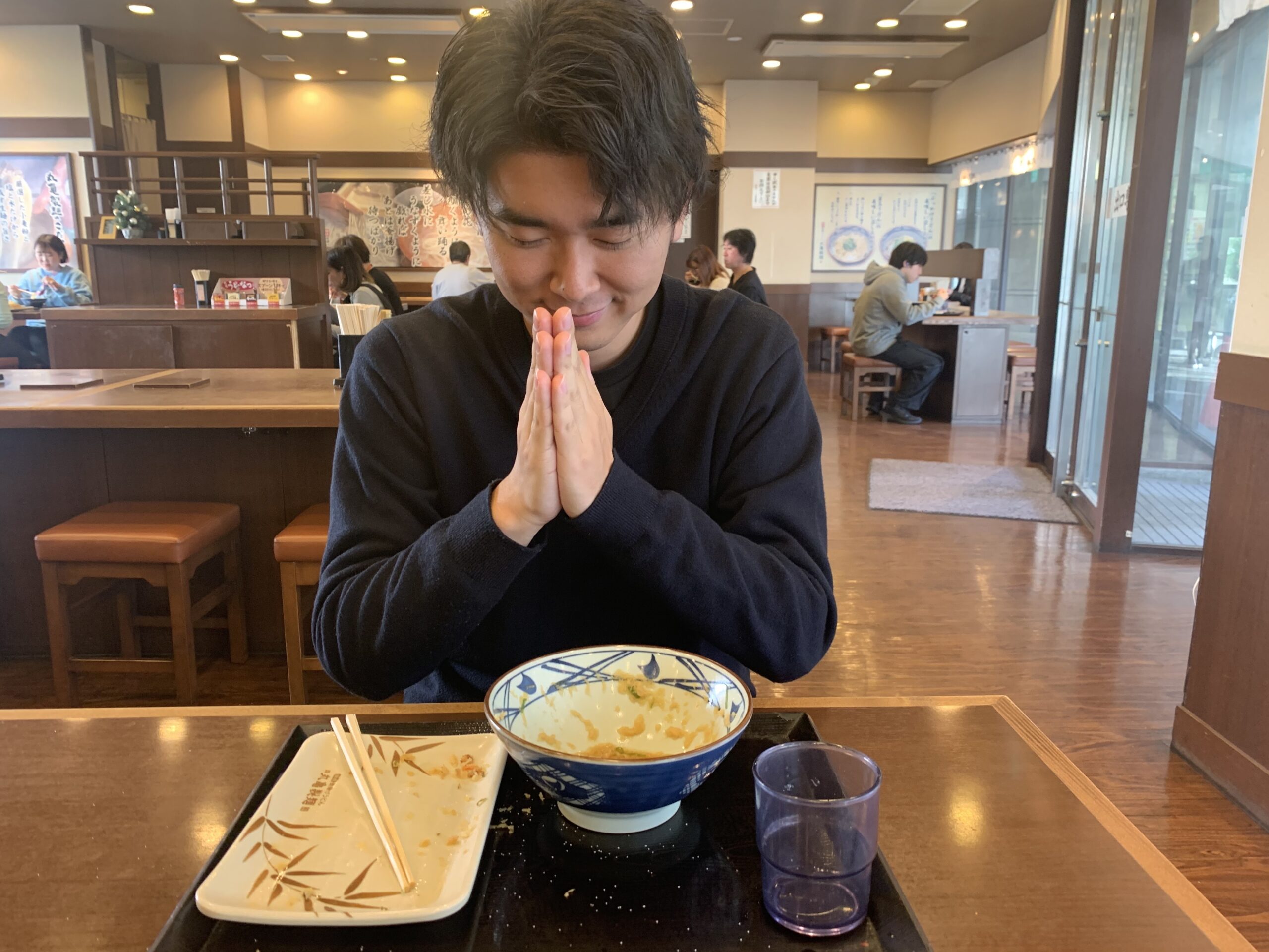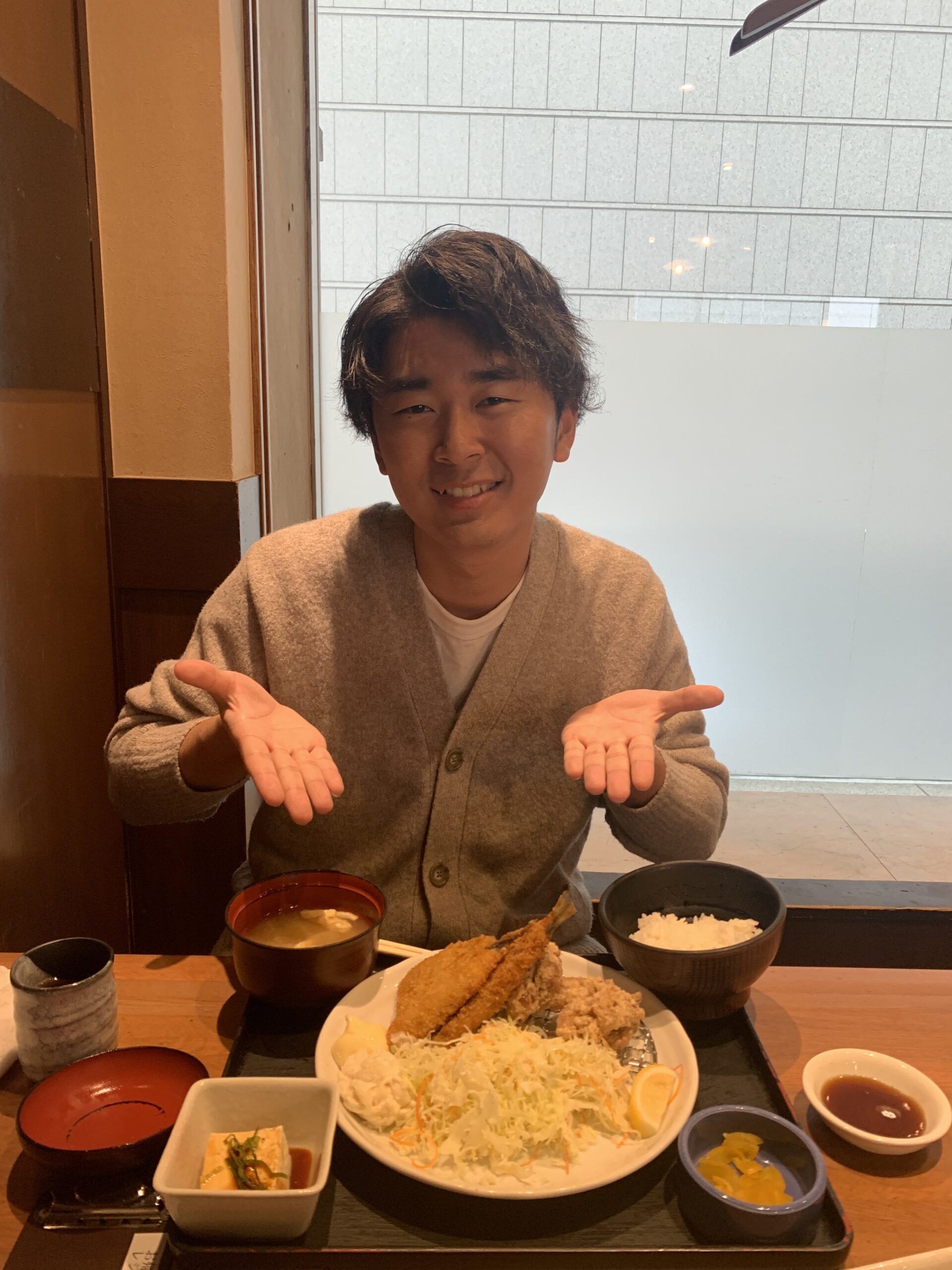 部署の先輩と一緒に、天ぷらとうどんでパワーチャージしたそうです笑